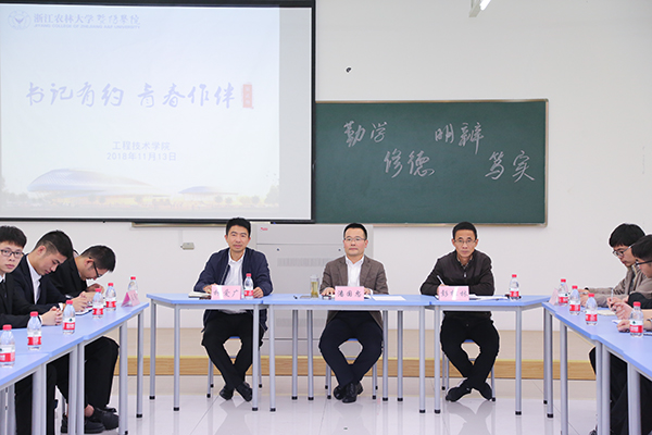 11月13日晚,第二期“书记有约•青春相伴”座谈交流会在理工2313教室举行。党委书记潘国忠与学生促膝而谈,指导学生成长成才。工程学院党政负责人,团学指导老师及30名学生骨干参加了座谈会。