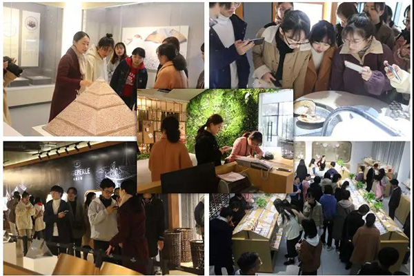 开班仪式后,与会领导和同学们在工作人员的陪同下,参观了天使之泪珍珠文化体验馆和珍珠创意工坊。时尚,美丽的馆内布局让同学们眼前一亮,尤其是设计专业的学生,更是赞不绝口;而悠远、博大的珍珠文化更让同学们对珍珠有了全新的认识,“以前只知道珍珠饰品就是长辈经常带的那种成串项链,原来珍珠饰品还可以如此精致”,一位学员指着创意工坊的珍珠饰品喜出望外。