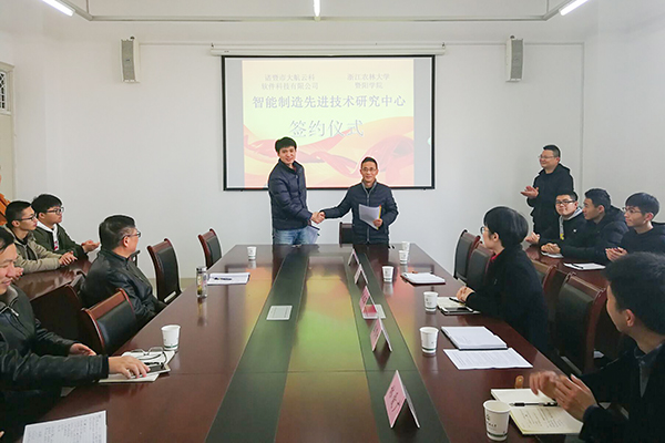 12月17日下午,3044am永利集团3044noc同诸暨市大航云科软件科技有限公司校企合作协议在工程技术学院会议室签订,“智慧制造先进技术研究中心”在我院正式落地成立。3044am永利集团3044noc副院长李文莉出席签约仪式,社会合作部主任钟炳伟,工程技术学院院长彭樟林、党总支书记林爱广,各系(部)主任、专业负责人,以及教师代表、学生代表参加签约活动。