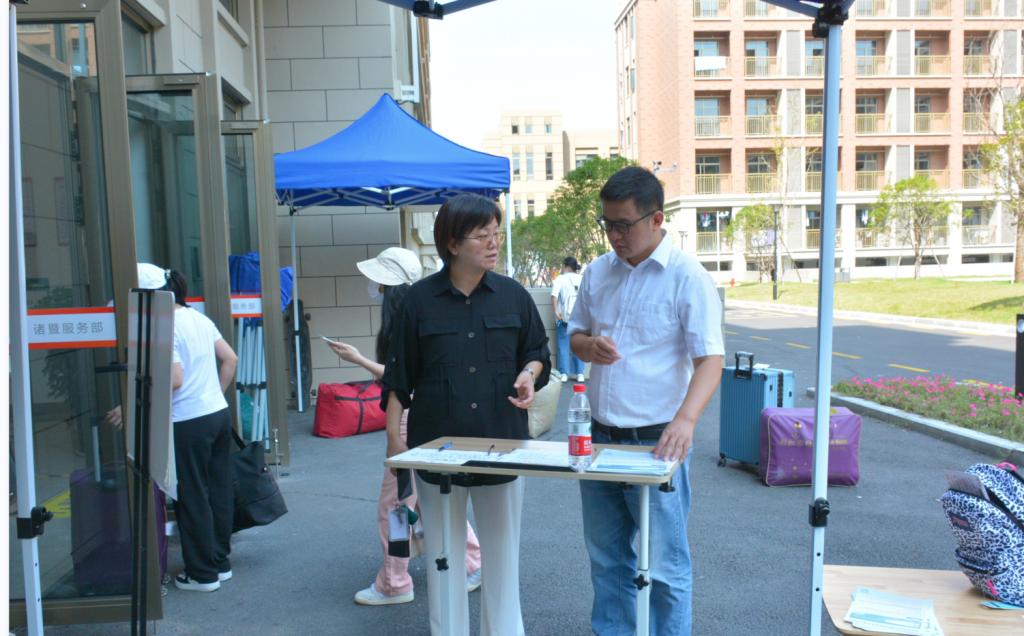 迎新当天,诸暨服务部相关负责人深入一线走访部门各个服务点,全体员工通力协作,相互配合,以饱满的热情、贴心的服务、暖情的态度为新生提供温馨如家的后勤保障。