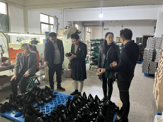 下午,刘伯茹一行来到诸暨市元品鞋业有限公司。公司负责人刘全伟介绍了企业经营状况、经营规模、生产形式等,双方就英语专业外贸人才培养和学生就业创业等方面合作进行了探讨。座谈后,姚江镇团委书记边均煌与刘院长一起为元品大学生暑期社会实践基地授牌,并参观了生产车间,详细了解鞋子制作过程、外贸营销业务等相关情况。