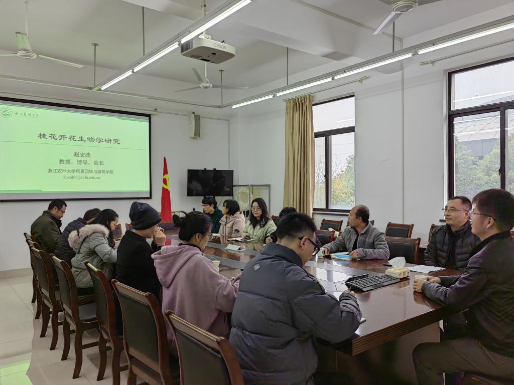 本次学术讲座赵宏波主要从桂花开花生物学研究入手,讲授了桂花成花机制、开花机制及花色成因的研究进展情况,结合自己研究的方向和角度,对植物生理的研究提出了全新的思路和方法。