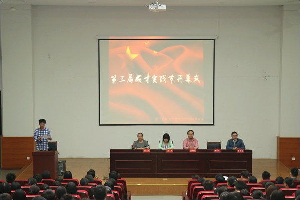 学工部(团委)相关负责人对第三届成才实践节的开幕表示祝贺,他希望通过此次成才实践节的成功举办,提高对学生综合能力培养的重视,通过形式多样的实践活动深入挖掘学生的潜力,鼓励学生大胆创新,让更多的学生勇于实践,励志成才。