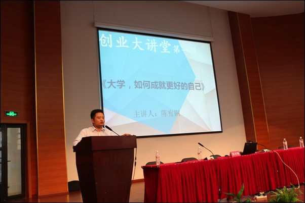 开幕式后,浙江天使之泪珍珠股份有限公司人力资源总监陈宥刚为广大学生作题为《大学,如何成就更好的自己》的报告。