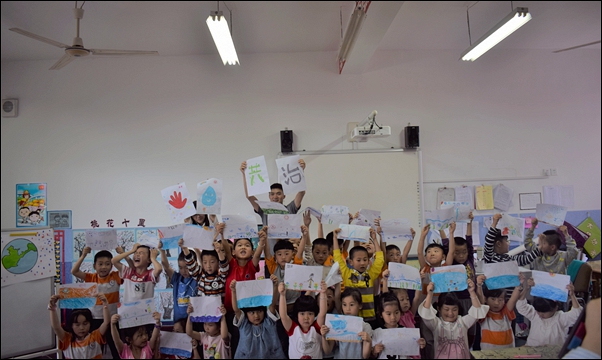 活动期间,志愿者通过简单介绍什么是“五水共治”,并例举了污水对社会的危害,呼吁孩子们一起节约水保护水,将节水爱水的环保理念融入孩子们的童稚心灵,真正让他们接受“知五水,节约水,爱环境”的熏陶教育。志愿者通过趣味教学、合作绘画和横幅签名等多种方式帮助小朋友们理解保护水资源的重要性。同时,志愿者希望他们通过自己的方式,能将这种环保理念传达给他们的父母、长辈,让更多的人行动起来。